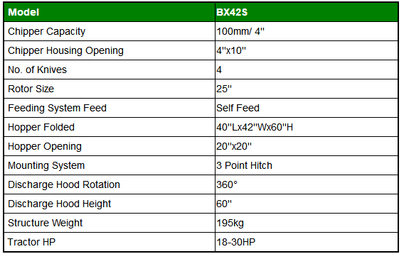 The BX-42S is a very simple and at the same time efficient and sturdy wood chipper.