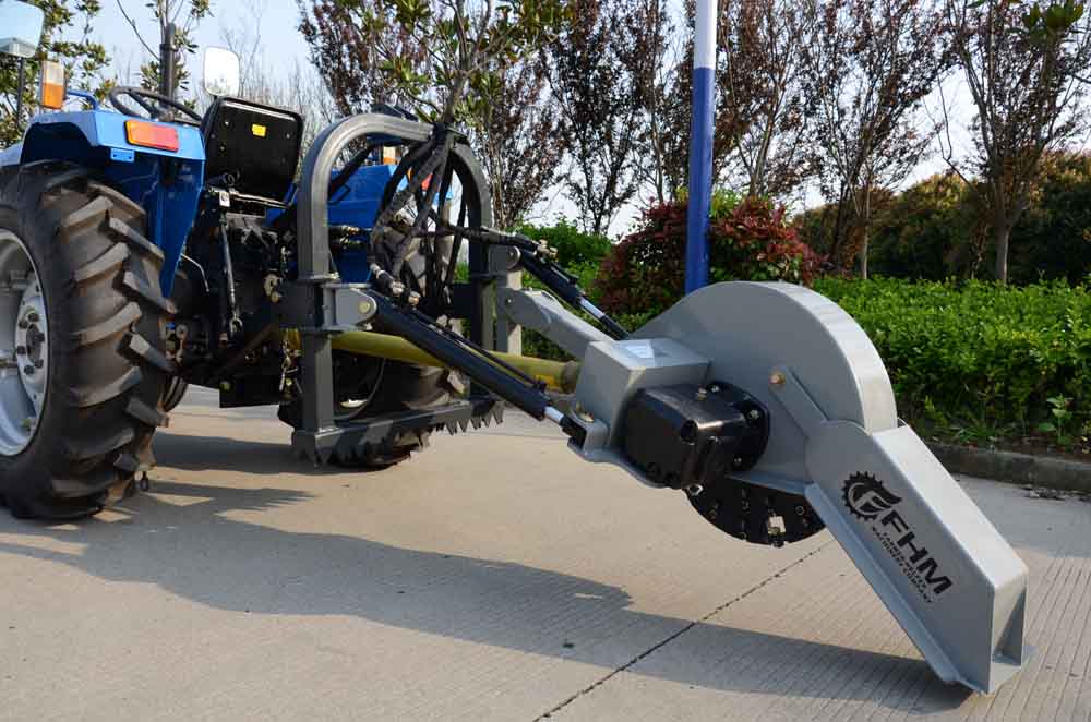 The milling head is vertically and horizontally swiveled with two hydraulic cylinders. The stump milling cutter is operated easily from the tractor cab.